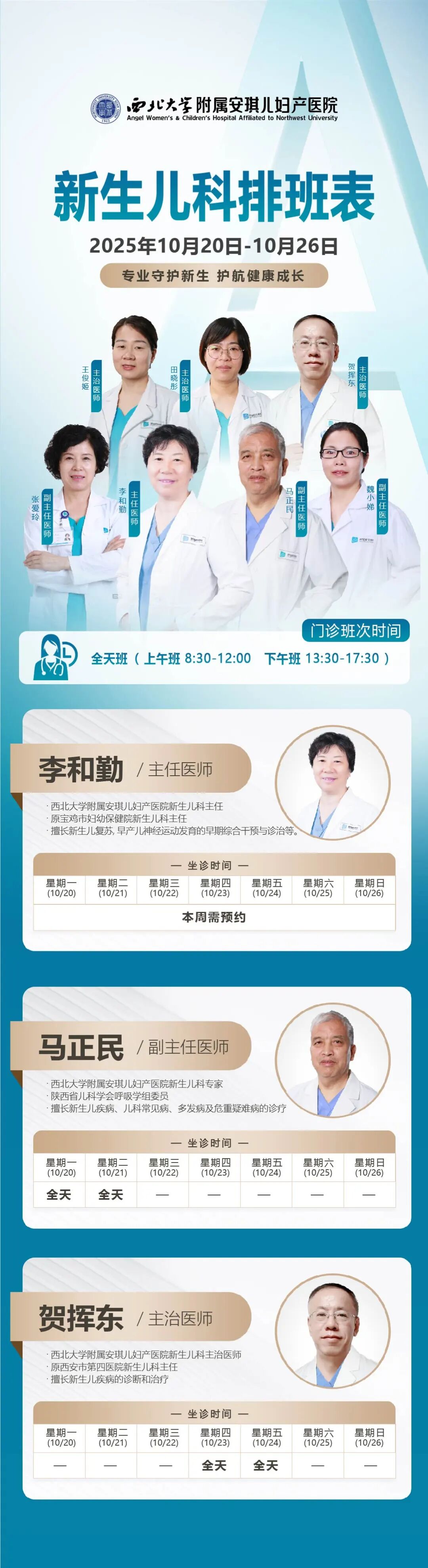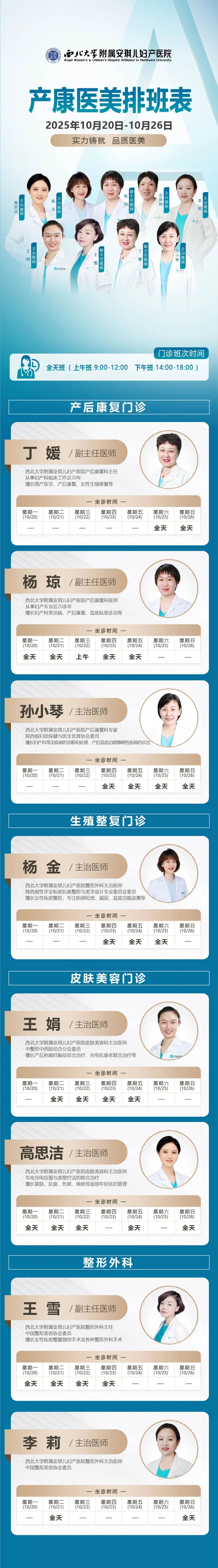 西安安琪儿妇产医院(10月20日至10月26日)专家坐诊时间表