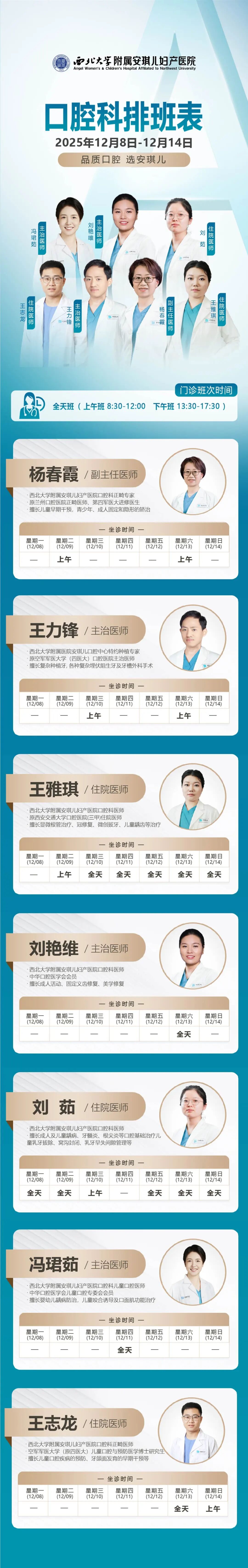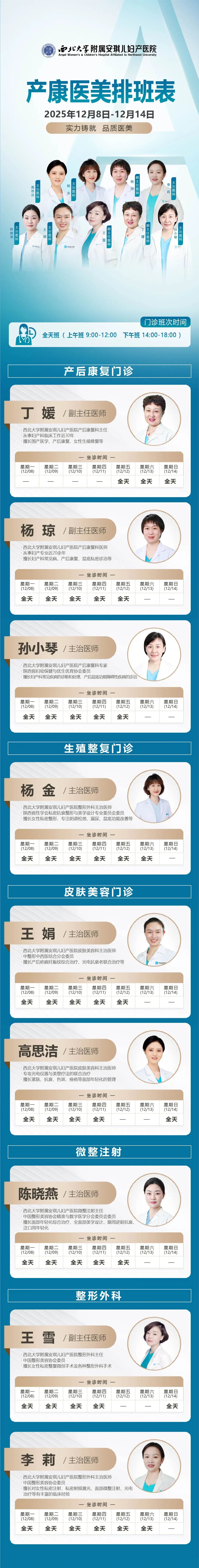 西安安琪儿妇产医院(12月8日至12月14日)专家坐诊时间表